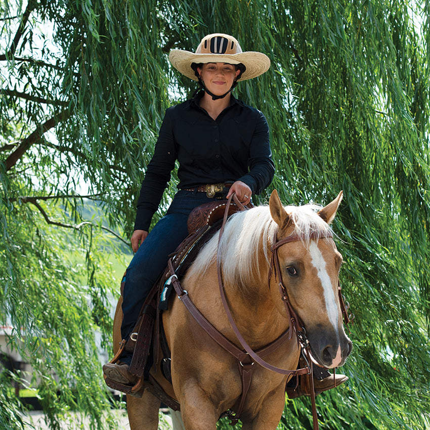 Instantly add full shade and sun protection to most Troxel helmet models with the New Helmet Brimmer™. Featuring a full 4 ½” wide genuine palm leaf brim with a patent pending helmet attachment system* that allows you to securely attach and remove the Helmet Brimmer™. Refer to the Helmet Brimmer™ Size Chart found here to select size A or B for the helmet style and size that you have. *Helmet not included. Images feature the Brimmer on the Liberty™ Black and Liberty™ Tan Duratec™.